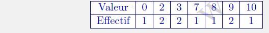 Il faut faire un tableau à deux lignes avec les valeurs dans la première ligne et les effectifs correspondants dans la seconde ligne.