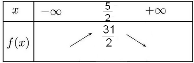 Le coefficient $a$ de $x^2$ est négatif donc la fonction $f$ est croissante sur $]-\infty;\dfrac{5}{2}[$ et décroissante sur $]\dfrac{5}{2};+\infty[$