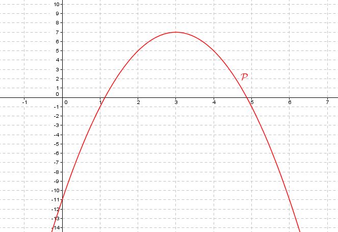 On considère la fonction $f$ définie sur $\mathbb{R}$ par $f(x)=-0,005x^2+0,6x-10$.