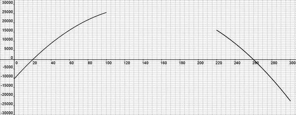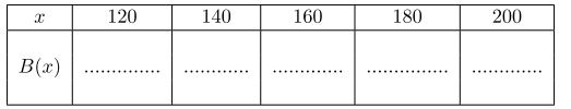 - Montrer que pour tout $x\in [0 ;300]$, on a $B(x)=(2x-40)(-x+260)$