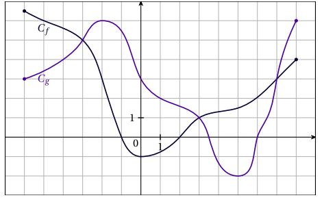 Il faut déterminer les abscisses des points d'intersection de la courbe $C_f$ et de la courbe $C_g$.