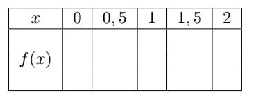 Afficher le tableau de valeurs avec un pas de $0,5$