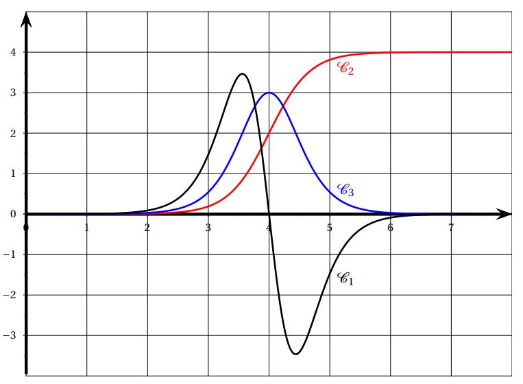 - Déterminer, en justifiant votre choix, quelle courbe correspond à quelle fonction.